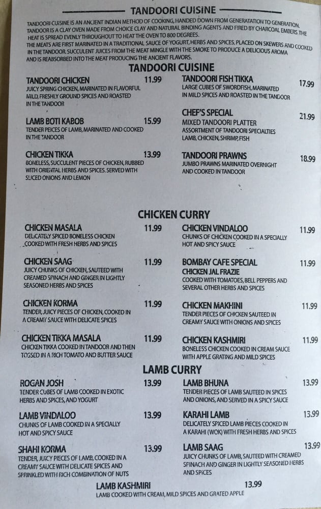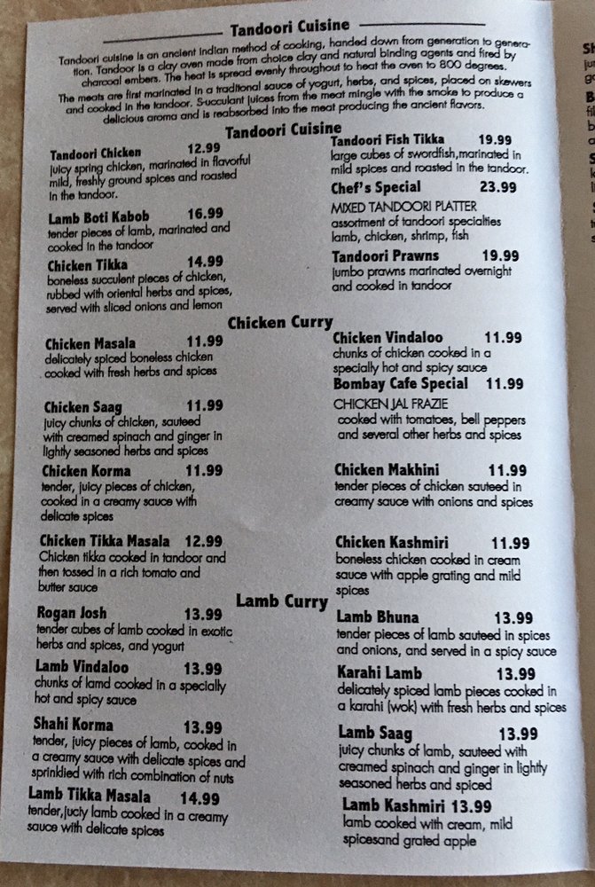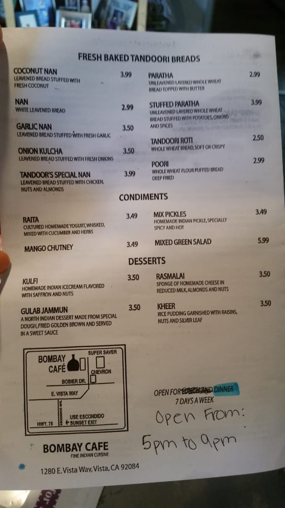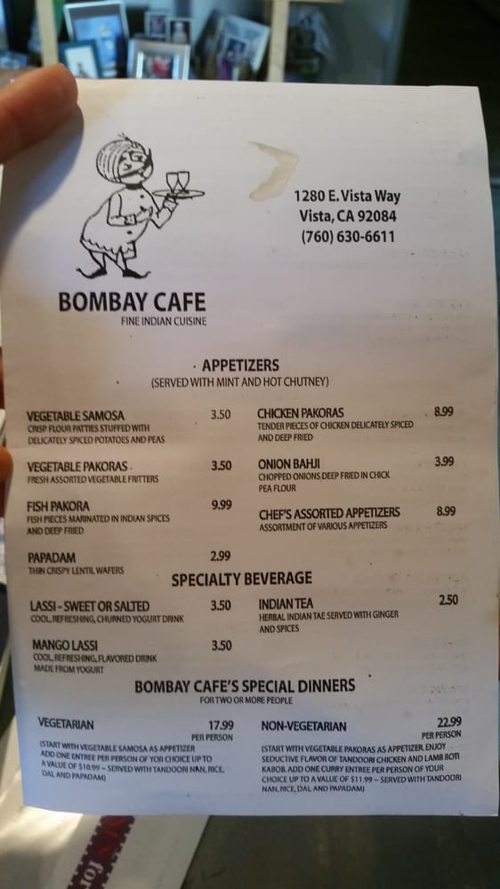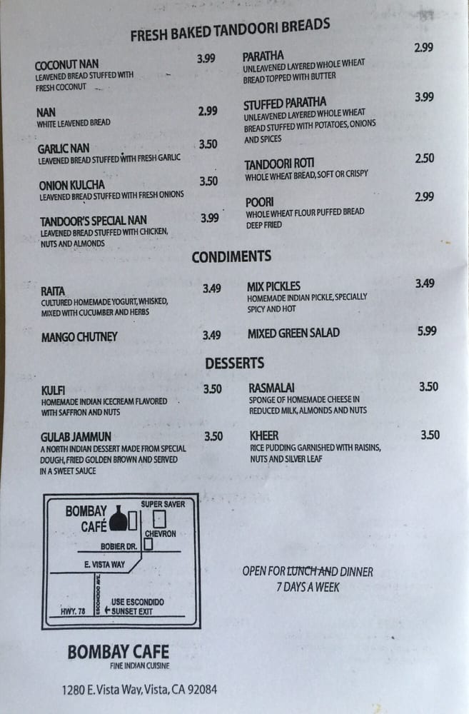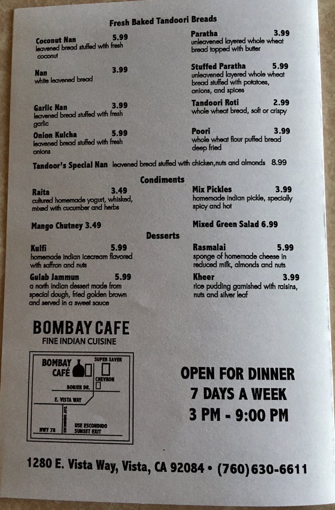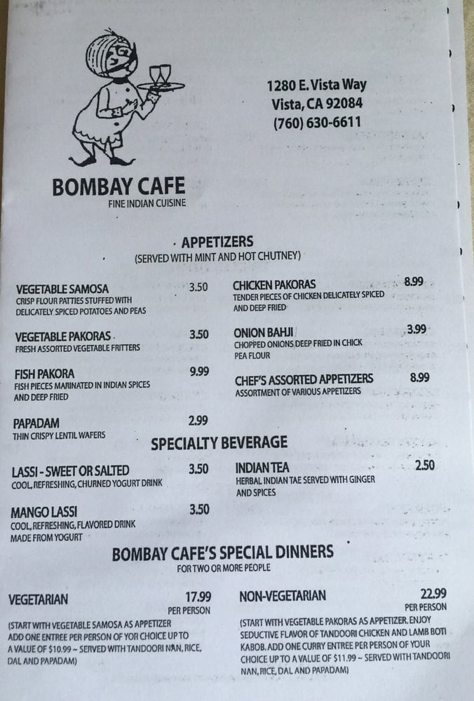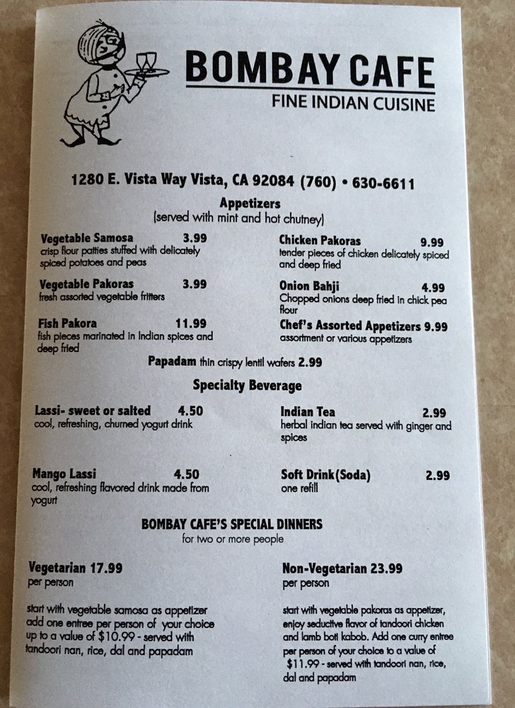 Bombay Cafe Vista Menu (Update 2025)